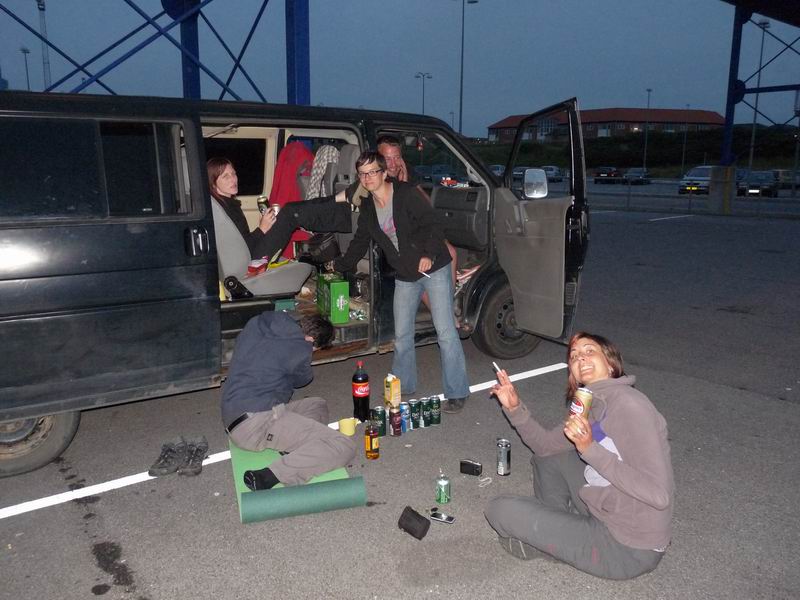 Kolem půl osmé ráno nás začíná Póča posbírávat po krajích českých. Po desáté nabíráme posledního člena v praze a míříme směrem na trajetk do dánského Puttgartnu. Cesta po Německé dálnici probíha bez problémů. Jen jako obvykle němečtí policisté si nenechají možnost nás na poslední chvíli zkontrolovat. Cesta na trajektu je docela rychlá a nedlouho za ním zastavujeme na pláži kde se ukládáme ke spánku.